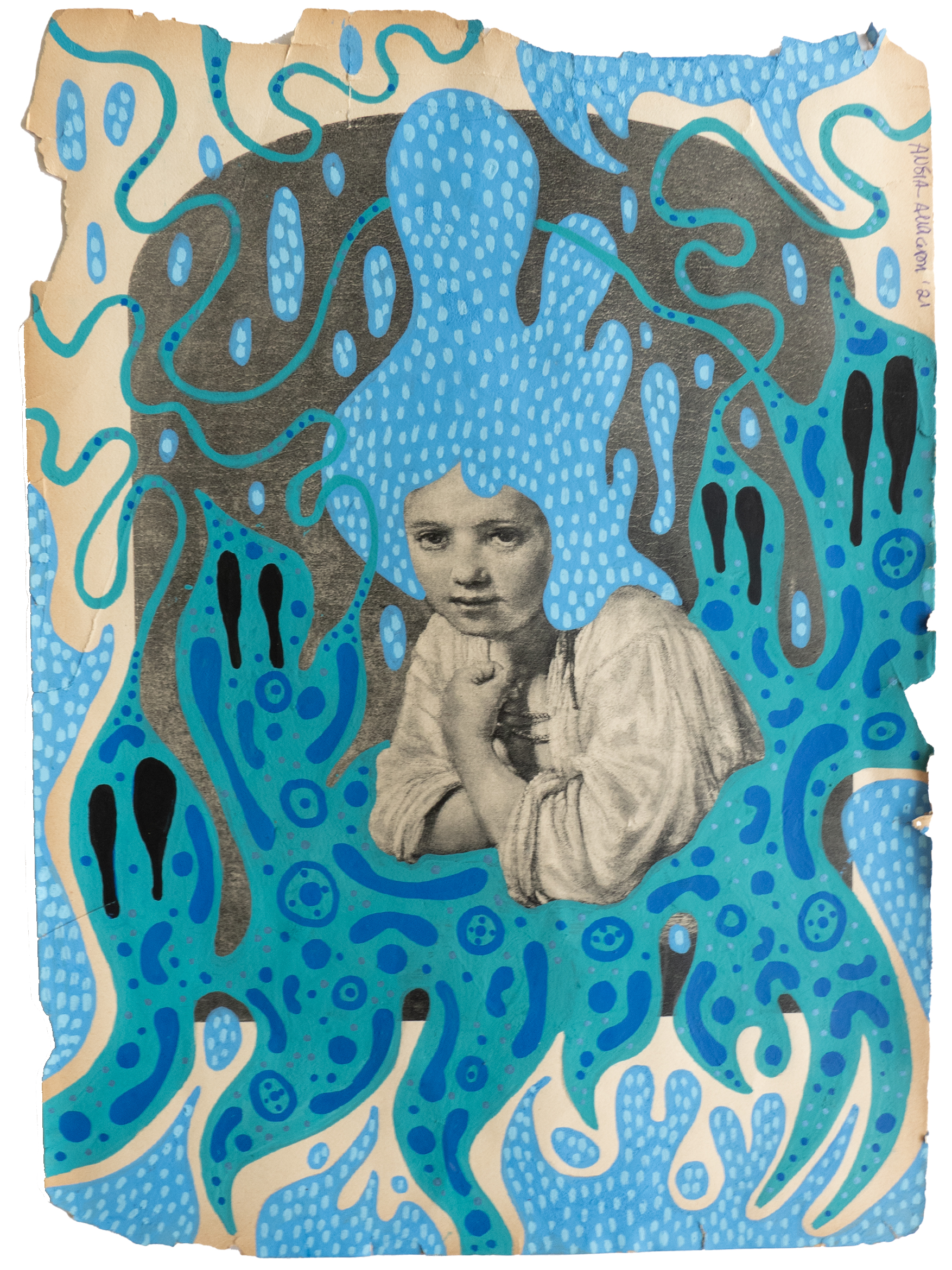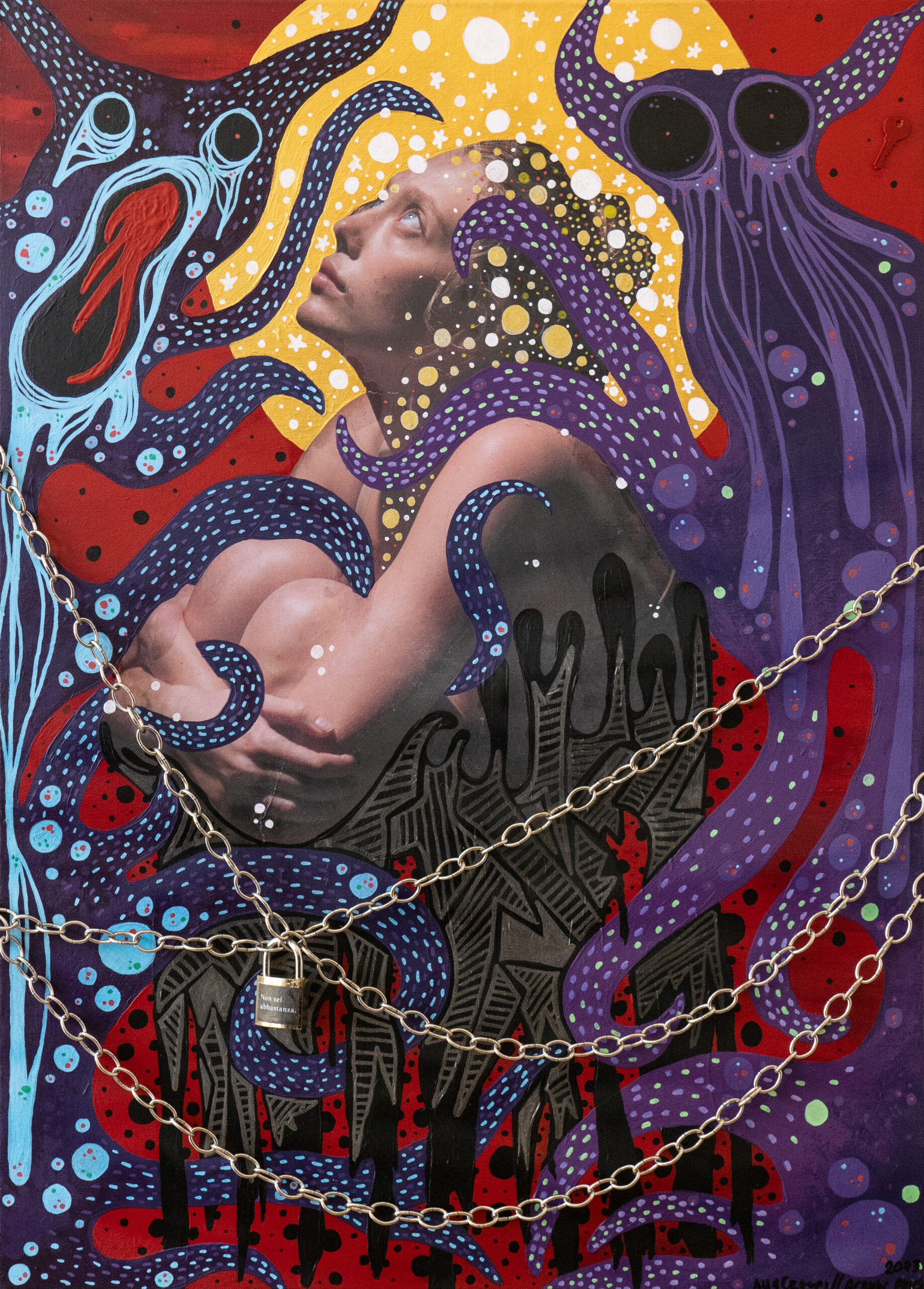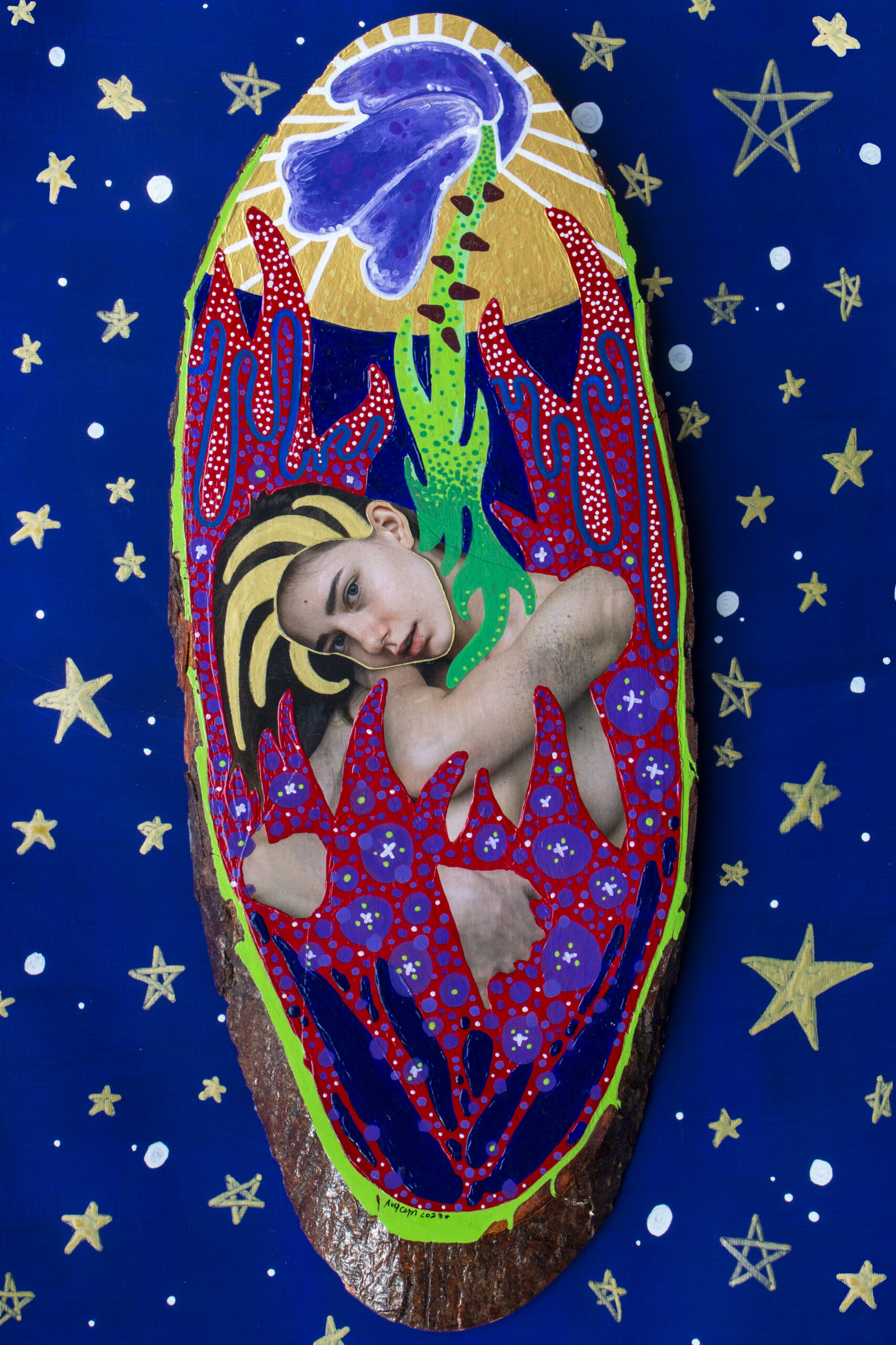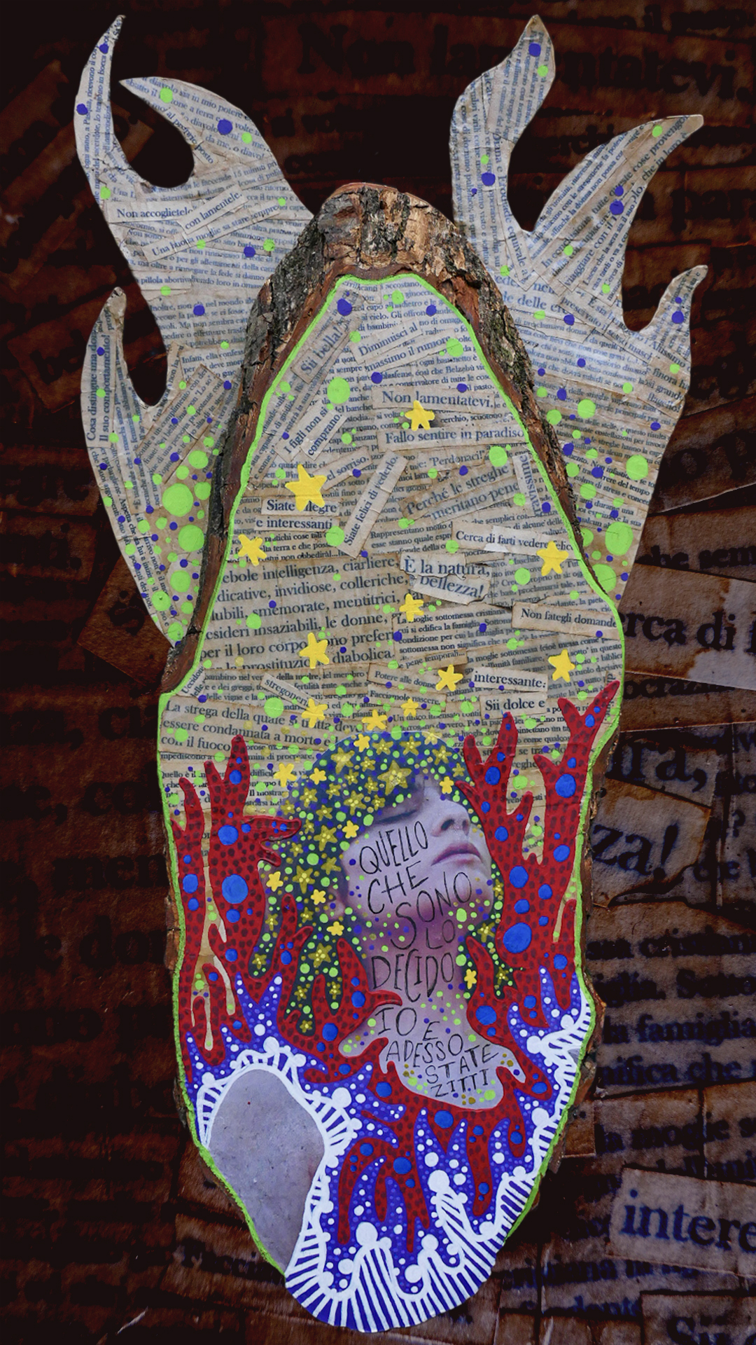 Il risultato di molti anni di esperimenti l’ha portata a delineare un proprio stile, che va a mischiare la ricerca fotografica, l’occhio grafico e la pittura tradizionale. Così, l’artista è riuscita ad aprire un nuovo capitolo della propria vita creativa e umana, miscelando su tela, legno e qualsiasi superficie da lei ritenuta interessante, i colori e le angosce, simbolismi complessi, ossessioni e caoticità emotiva che da sempre fanno parte della sua vita, del suo essere.